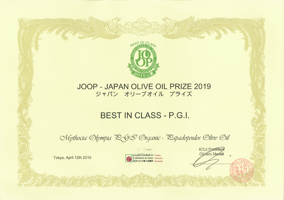 Best In Class for Mythocia Early Hrvest Olympia PGI Organic at Japan Olive Oil Prize 2019